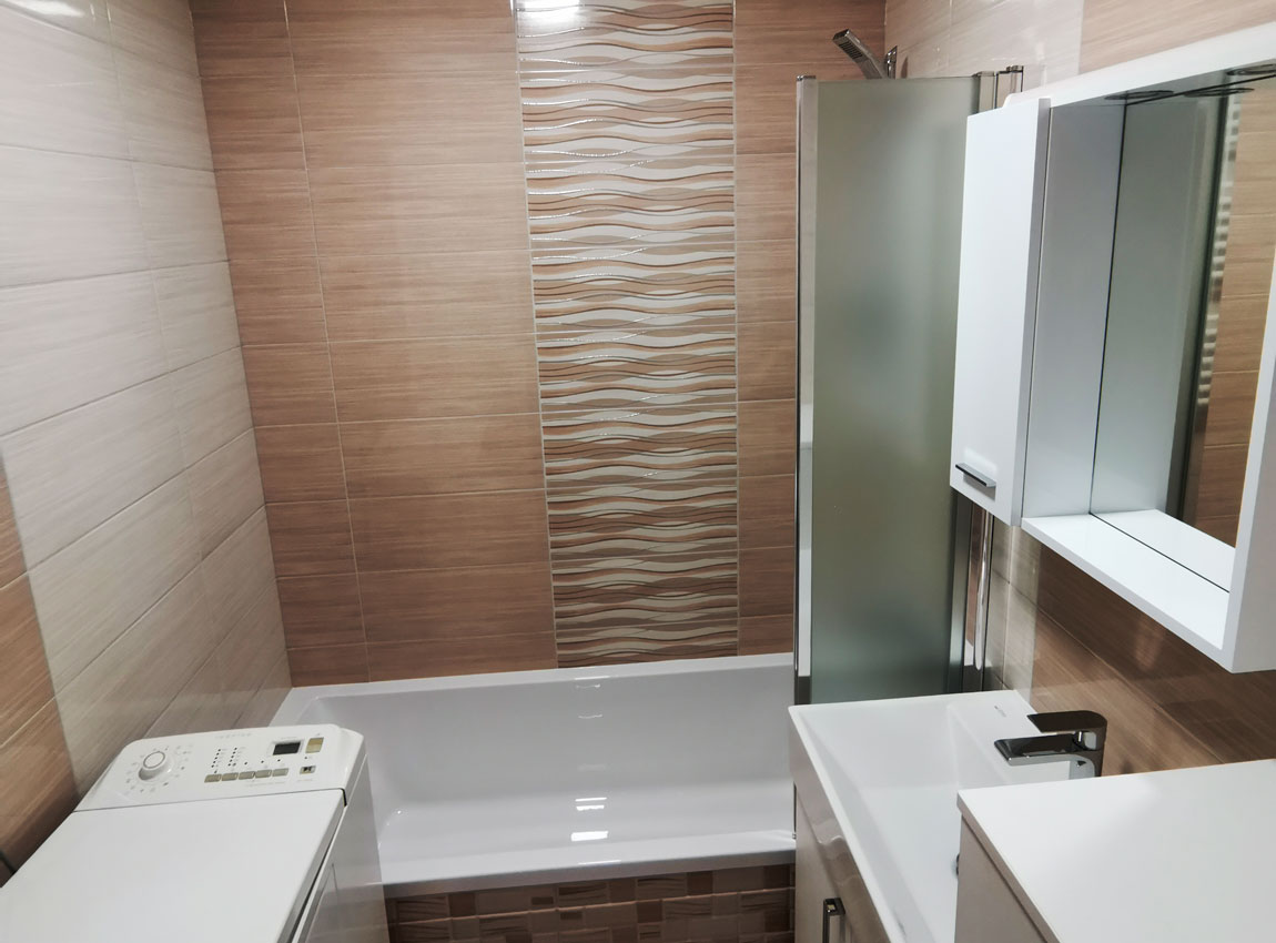 Rekonstrukce jádra v bytovém domě Rekonstrukce jádra v bytovém domě. Popis činností: rekonstrukce jádra v BD, nové elektro + vodoinstalace, obklady, dlažba, sanitární zařízení.